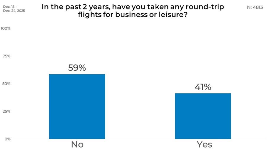 March 13, 2026Air travel is considered by many economists to be a forward-looking indicator of consumer spending and economic confidence. We wanted to understand how the recent economic turmoil has impacted travel over the last couple of years, so we asked respondents about it in our most recent wave of research-on-research.